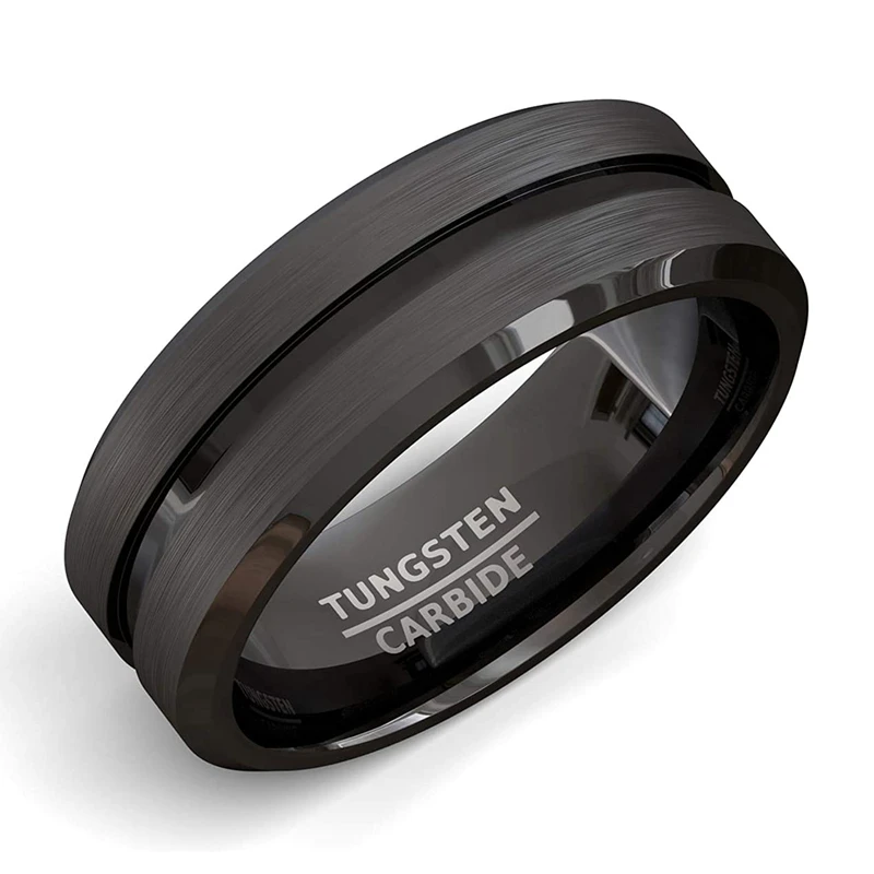 8mm Men Rings Jewelry Black Groove Matte Stainless Steel Wedding Engagement Party Gift Anniversary Rings Jewelry