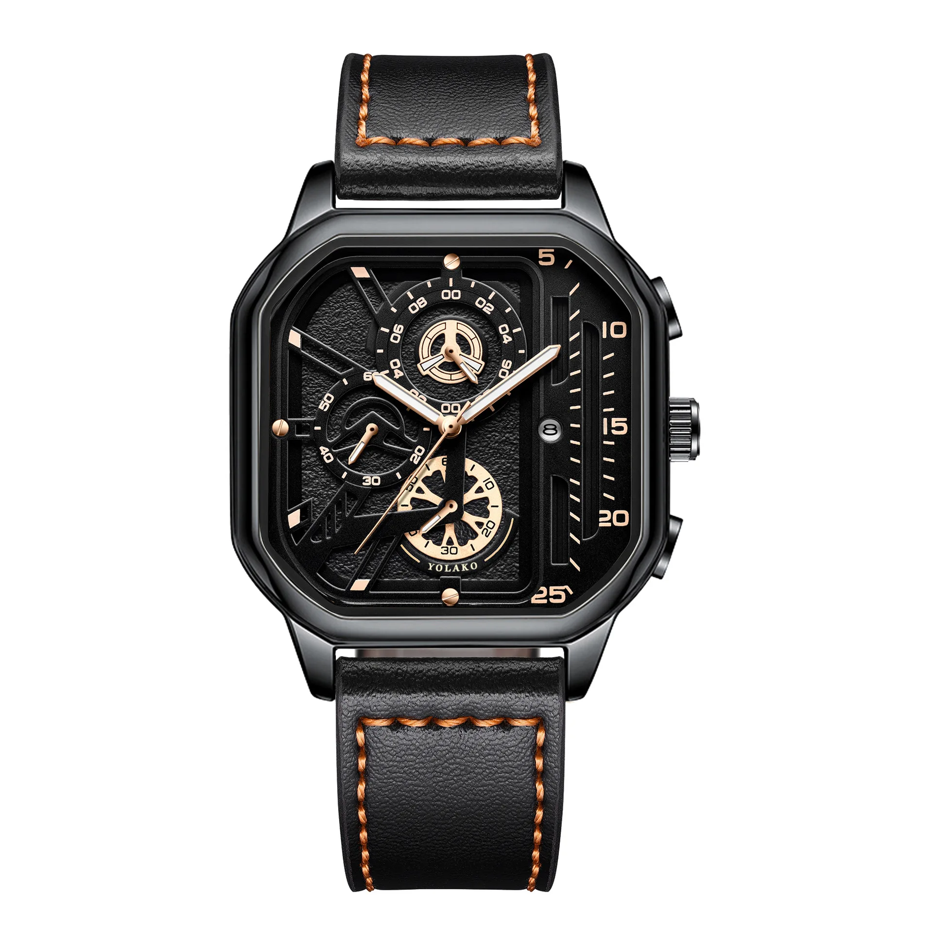 Men Quartz Watches Alloy Dial Business Men Watch PU Leather Strap Big Dial Square Sports Watch Cool Black Wristwatch for Man