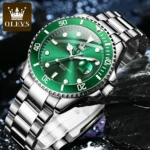 OLEVS Top Original Men Quartz Watch Green Waterproof Watch for Men Stainless Steel Quartz Men Luxury Watch Luminous Wristwatch