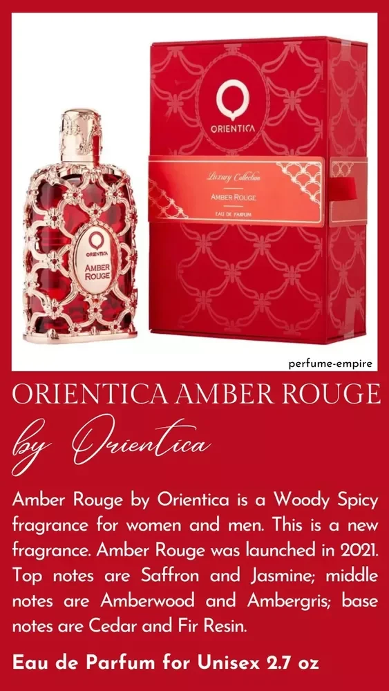 • Orientica Amber Rouge covers all those foundations, making it our newest fragrance for a glamorous night out