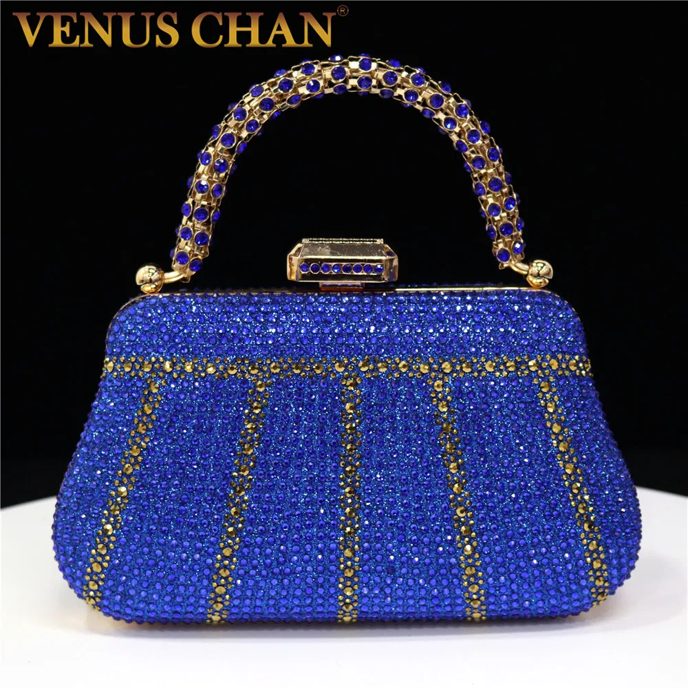 Popular In Nigeria Exquisite Evening Bags With Diamond Design Fashion Handle Clutch Rhinestone Embellished Long Chain Bag